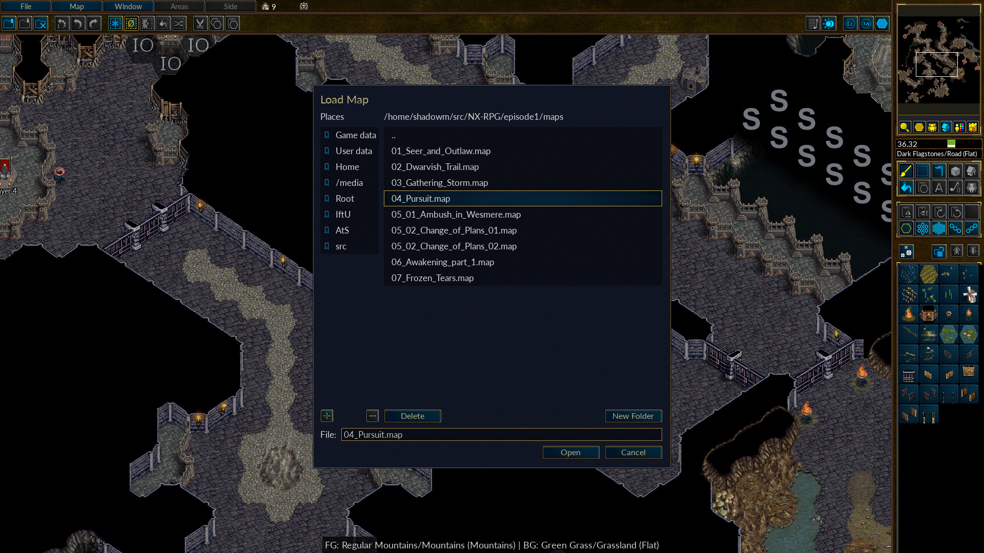 Los diálogos Abrir y Guardar Como del editor de mapas también han sido rediseñados por completo, permitiendo un acceso más fácil a los archivos del juego y a los complementos instalados, así como a cualquier otra ubicación mediante enlaces de acceso rápido.